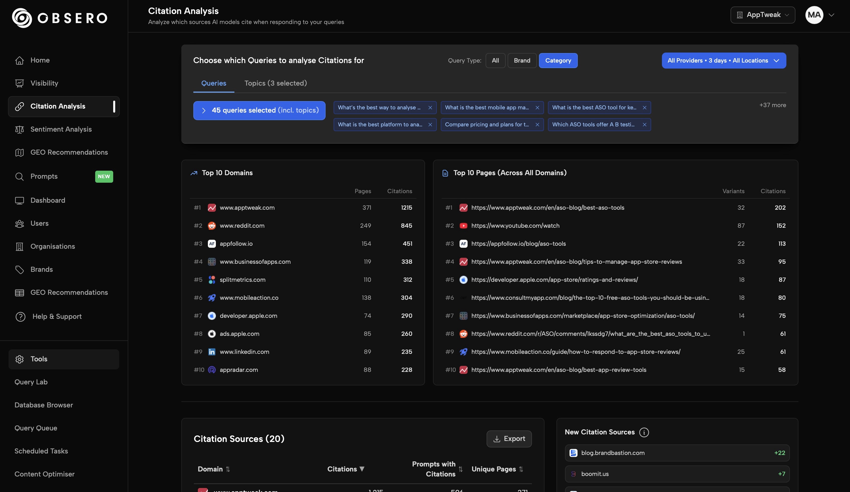 That's where Obsero comes in, allowing you to identify the most cited domains and pages for prompts relevant to your audience, understand whether or not your brand is mentioned in those cited pages today, and identifying tactics to increase your visibility through growing cited mentions in the future.